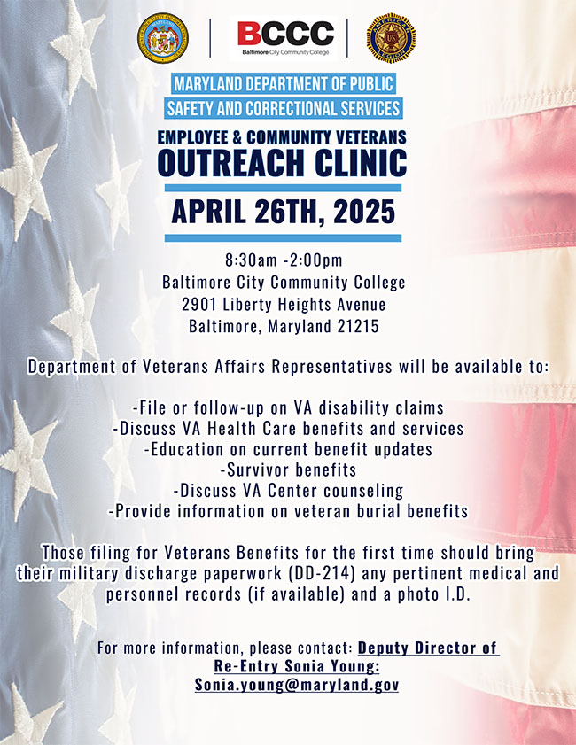 Those filing for Veterans Benefits for the first time should bring their military discharge paperwork (DD-214) any pertinent medical and personnel records (if available) and a photo I.D.